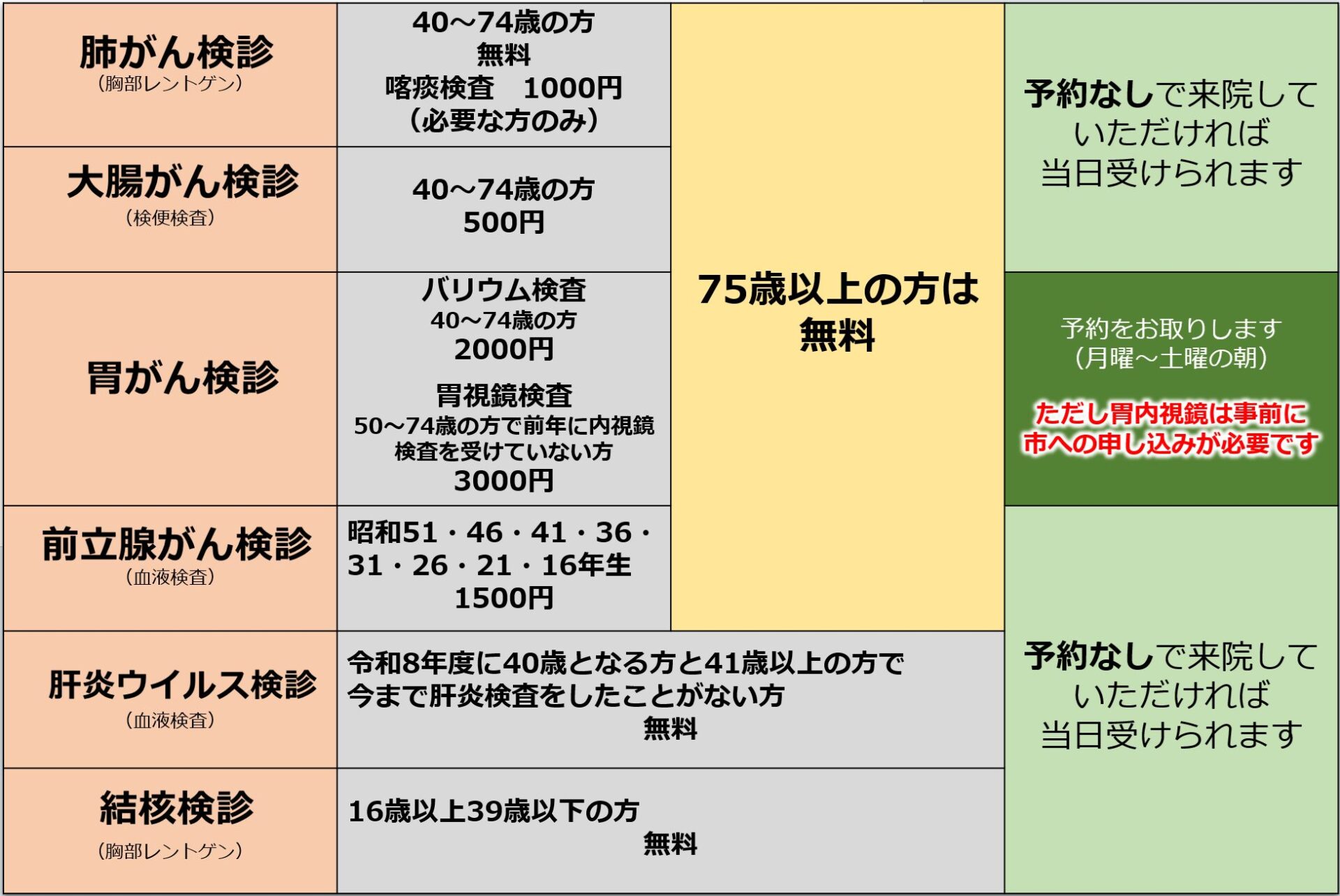 ※ **胃がん検診(内視鏡検査)**をご希望の方は、事前予約が必要となります。